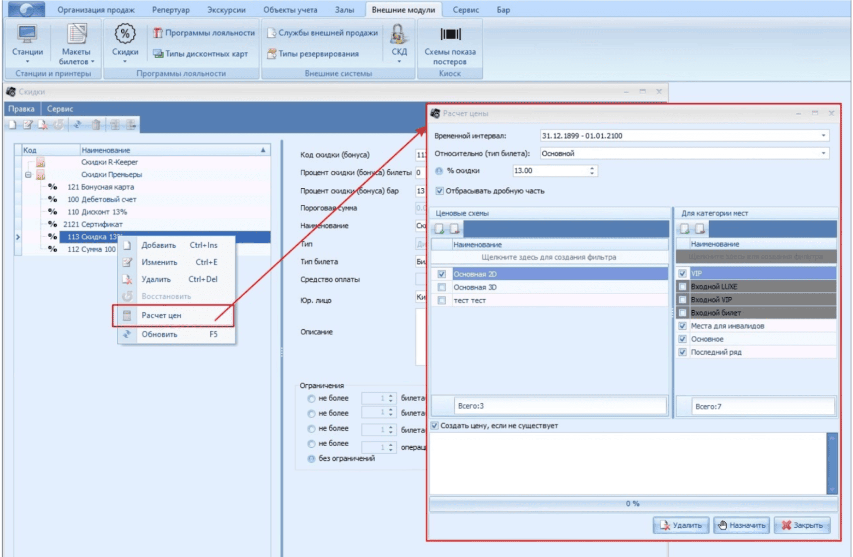 Менеджерская → Внешние модули → Скидки → Скидки премьеры