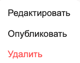 Чтобы отредактировать, опубликовать, скрыть или удалить новость, нажмите