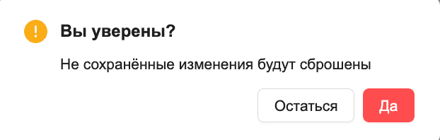 После внесения изменений нажмите Сохранить. При переходе между вкладками несохраненные данные будут сброшены. На экране появится предупреждение.
